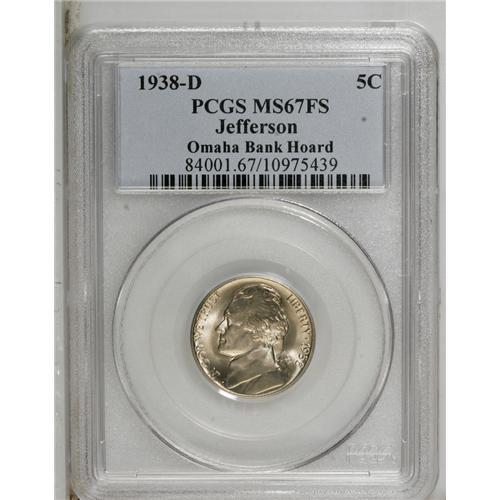 1938-D 5C MS67 Full Steps PCGS. Ex: Omaha Bank Hoard.