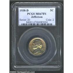 <TABLE cellSpacing=0 cellPadding=0 width="100%" bgColor=#000000 border=0><TBODY><TR><TD width="100%"><TABLE cellSpacing=1 cellPadding=3 width="100%" border=0><TBODY><TR><TD width="100%" bgColor=#79735c><FONT face=arial color=#ffffff size=3><B>Description</B> </FONT></TD></TR><TR><TD width="100%" bgColor=#ffffff><FONT face=arial size=2><B>1938-D 5C MS67 Full Steps PCGS.</B></I> Fully struck with a few light marks and splendid rainbow toning over each side. One of the most attractive '38-D Jeffersons that we have seen. Population: 9 in 67, 0 finer (8/03). </FONT></TD></TR></TBODY></TABLE></TD></TR></TBODY></TABLE><BR><A name=PricesRealized></A><TABLE cellSpacing=0 cellPadding=0 width="100%" bgColor=#000000 border=0><TBODY><TR><TD width="100%"><TABLE cellSpacing=1 cellPadding=3 width="100%" border=0><TBODY><TR><TD width="100%" bgColor=#79735c><A name=PR><FONT face=arial color=#ffffff size=3><B>Previous Prices from Heritage Auctions</B> </FONT></A></TD></TR><TR><TD bgColor=#f6f6ed><TABLE cellSpacing=0 cellPadding=0 width="100%" border=1><TBODY><TR><TD align=middle width="33%"><B>Date</B></TD><TD align=middle width="33%"><B>Service</B></TD><TD align=middle width="33%"><B>Price</B></TD></TR><TR bgColor=whitesmoke><TD width="33%"><B>03/18/2003</B></TD><TD width="33%">ANACS</TD><TD width="33%">$195.50</TD></TR></TBODY></TABLE></TD></TR><TR><TD bgColor=#ffffff><FONT face=arial size=1 ?>PLEASE NOTE: All prices realized reflect the final hammer price PLUS the buyer's premium in auctions that charge a buyer's premium. Each item has a notation at the top of the listing indicating whether that lot included a buyer's premium. Example: A item that sells with a final hammer price of $100 and a 20% buyer's premium will display with a price realized of $120. All information listed is intended to be as accurate as possible, but errors are possible. Please use this guide carefully and inform us of any inaccuracies. </FONT></TD></TR></TBODY></TABLE></TD></TR></TBODY></TABLE><BR><TABLE cellSpacing=0 cellPadding=0 width="100%" bgColor=#000000 border=0><TBODY><TR><TD width="100%"><TABLE cellSpacing=1 cellPadding=3 width="100%" border=0><TBODY><TR><TD width="100%" bgColor=#79735c colSpan=6><FONT face=arial color=#ffffff size=3><B>Price Guide*</B> </FONT></TD></TR><TR bgColor=#f6f6ed><TD align=middle><B>Grade</B> </TD><TD align=middle><B>Coin World<BR>(Trends)</B> </TD><TD align=middle><B>Numismedia<BR>Retail</B> </TD><TD align=middle><B>Numismedia<BR>Wholesale</B> </TD><TD align=middle><B>Coin<BR>Universe</B> </TD><TD align=middle><B>Heritage<BR>Value Index</B> </TD></TR><TR bgColor=#ffffff><TD align=middle>66</TD><TD align=right>---</TD><TD align=right>---</TD><TD align=right>---</TD><TD align=right>---</TD><TD align=right>---</TD></TR><TR style="FONT-WEIGHT: bold" bgColor=#cccfdd><TD align=middle>67</TD><TD align=right>---</TD><TD align=right>---</TD><TD align=right>---</TD><TD align=right>---</TD><TD align=right>---</TD></TR><TR bgColor=#ffffff><TD align=middle>68</TD><TD align=right>---</TD><TD align=right>---</TD><TD align=right>---</TD><TD align=right>---</TD><TD align=right>---</TD></TR><TR bgColor=#ffffff><TD colSpan=6><FONT size=1>*All information listed is intended to be as accurate as possible, but errors are possible. No item may be returned or refused based on this information which is provided as a service to our customers. You should contact each pricing source directly to determine the accuracy of this information. </FONT></TD></TR></TBODY></TABLE></TD></TR></TBODY></TABLE><BR><TABLE cellSpacing=0 cellPadding=0 width="100%" bgColor=#000000 border=0><TBODY><TR><TD width="100%"><TABLE cellSpacing=1 cellPadding=3 width="100%" border=0><TBODY><TR><TD width="100%" bgColor=#79735c><FONT face=arial color=#ffffff size=3><B>Population Guide</B> </FONT></TD></TR><TR bgColor=#ffffff><TD align=middle><!-- Begin Output of Population Grid--><TABLE cellSpacing=0 cellPadding=0 width="100%" border=0><TBODY><TR><TD vAlign=center><TABLE cellSpacing=0 width="100%" border=1 cellsadding="3"><TBODY><TR><TD vAlign=center><TABLE cellSpacing=0 cellPadding=3 width="100%" border=1><TBODY><TR><TD vAlign=center align=middle bgColor=#f0f1e8 colSpan=2 <CENTER><FONT face=Arial size=2><B>PCGS Pop </B></FONT><CENTER></CENTER></TD><TD vAlign=center align=middle bgColor=#f0f1e8 colSpan=2><CENTER><FONT face=Arial size=2><B>NGC Pop</B></CENTER></FONT></TD></TR><TR><TD vAlign=center><FONT face=Arial size=2>(67)</FONT> </TD><TD vAlign=center align=right><FONT face=Arial size=2>9</FONT> </TD><TD vAlign=center><FONT face=Arial size=2>(67)</FONT> </TD><TD vAlign=center align=right><FONT face=Arial size=2>0</FONT> </TD></TR><TR><TD vAlign=center><FONT face=Arial size=2>(>67)</FONT> </TD><TD vAlign=center align=right><FONT face=Arial size=2>0</FONT> </TD><TD vAlign=center><FONT face=Arial size=2>(>67)</FONT> </TD><TD vAlign=center align=right><FONT face=Arial size=2>0</FONT> </TD></TR></TBODY></TABLE></TD></TR></TBODY></TABLE></TD></TR></TBODY></TABLE><!-- End Output of Population Grid--> Important notice: Heritage usually auctions material at the rate of 200-250 lots per hour. On some occasions eBay Live bid software or the Internet may not be able to keep up with the pace of the auction. We recommend placing a realistic absentee bid now as insurance to avoid disappointment. Occasionally the auctioneer may eliminate or reject an eBay Live bid, and the auctioneer may also reopen a lot after the close of the eBay live bidding (usually because we missed an audience bid), and may reject your bid even if it shows you as the winning bidder. By bidding via eBay Live, you agree that Heritage may award the lot to another bidder at its sole discretion under the circumstances described above or any other reasonable circumstances. Also please note that all Heritage lots purchased through eBay Live carry a 20% Buyer's Premium. Please make sure you read the Terms and Conditions before you bid.</TD></TR></TBODY></TABLE></TD></TR></TBODY></TABLE>