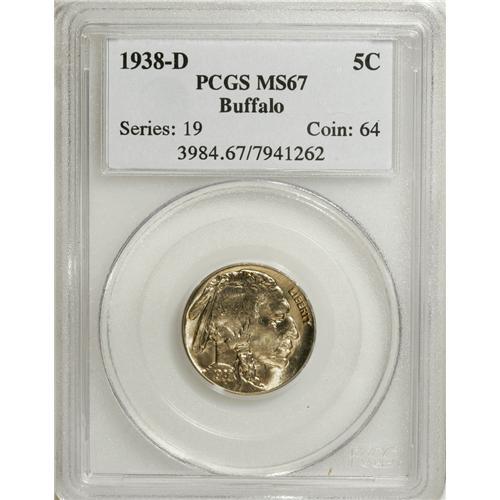 1938-D 5C MS67 PCGS. PCGS Population (1207/8). NGC Cen