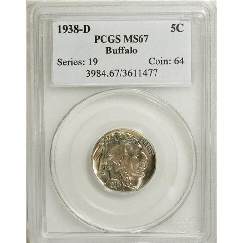 1938-D 5C MS67 PCGS. PCGS Population (1207/8). NGC