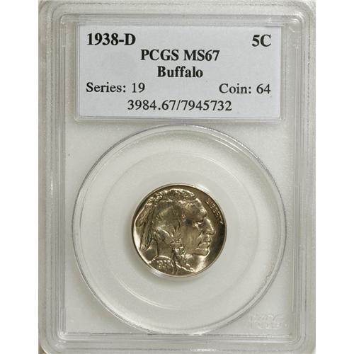 1938-D 5C MS67 PCGS. PCGS Population (1207/8). NGC