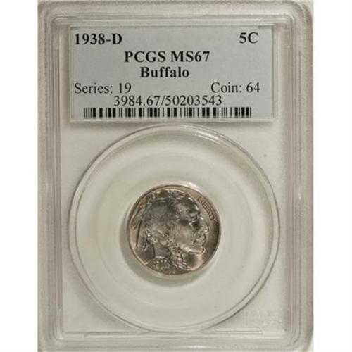 1938-D 5C MS67 PCGS. PCGS Population (1207/8). NGC