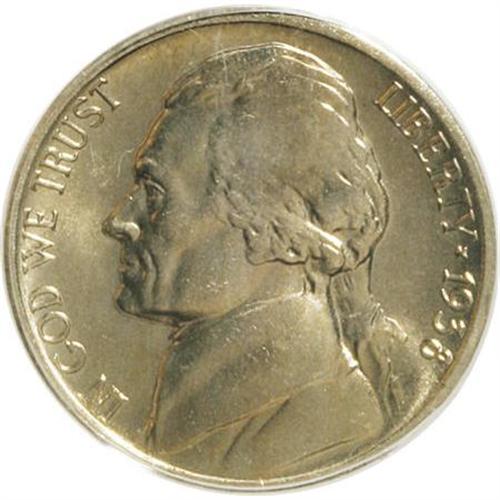 <B>1938-D 5C MS67 PCGS.</B></I> PCGS Population (191/2). NGC Census: (646/5). Mintage: 5,376,000. Numismedia Wsl. Price for NGC/PCGS coin in MS67: $92. (#4001)<BR><BR><b>Shipping:</b> Coins & Currency (<a target="_blank" href="http://www.heritageauctions.com/common/shipping.php">view shipping information</a>)