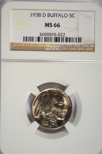 1938-D BUFFALO NICKEL, NGC MS-66 SUPERB