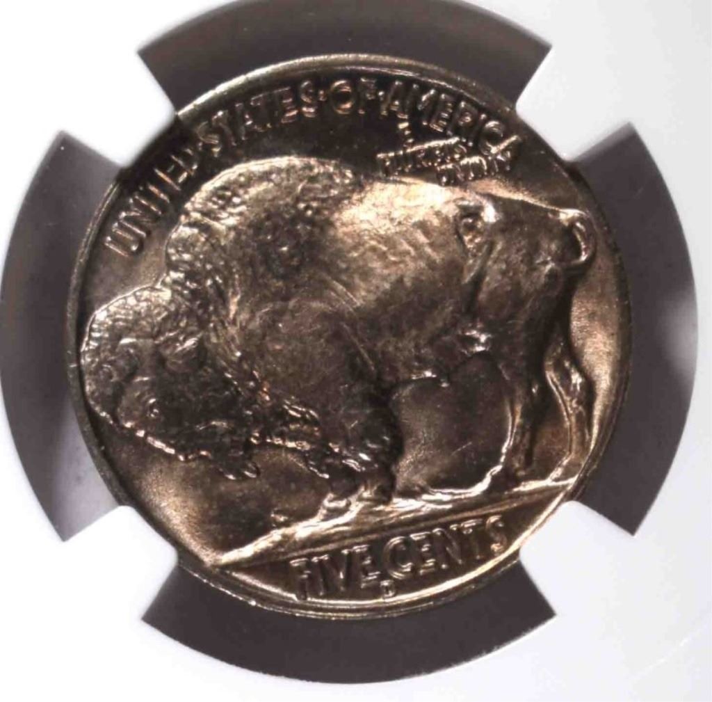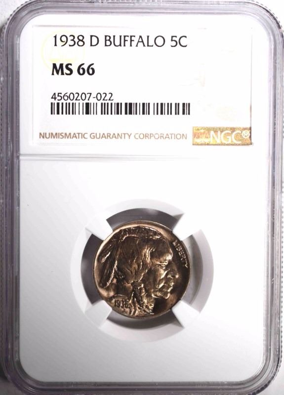 1938-D BUFFALO NICKEL, NGC MS-66 ESTIMATE $75 - $85.