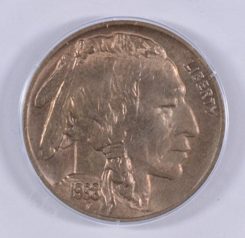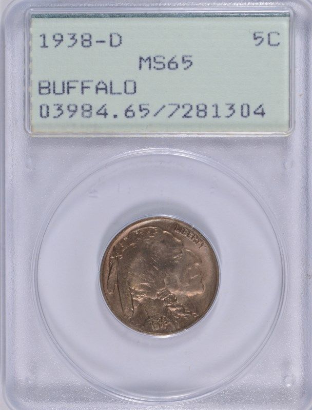 1938-D BUFFALO NICKEL, PCGS MS-65 RATTLER HOLDER!