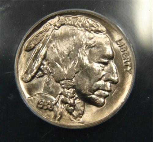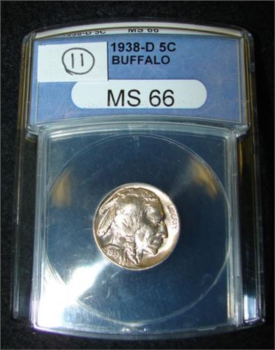 1938-D BUFFALO NICKEL. Graded by ANACS. MS 66.