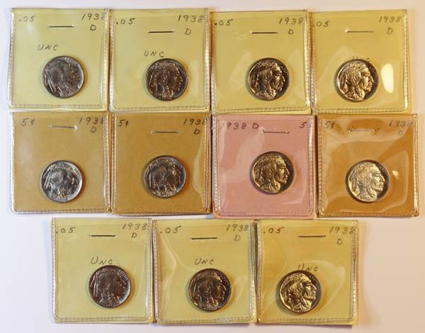 1938-D Buffalo Nickel, 11 pieces. Uncirculated.