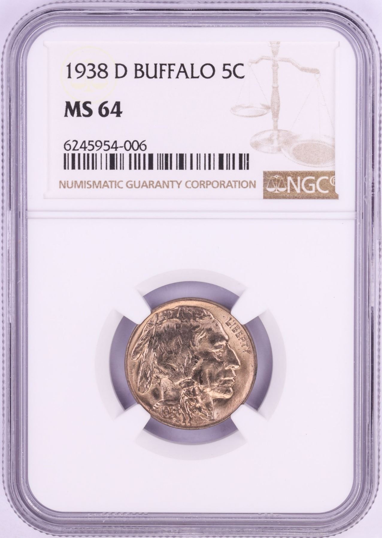 One 1938-D Buffalo Nickel Coin NGC MS64.