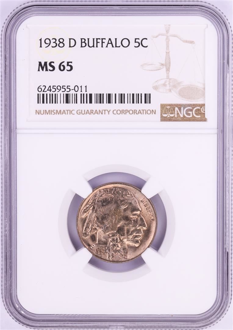 One 1938-D Buffalo Nickel Coin NGC MS65. NGC Certified.