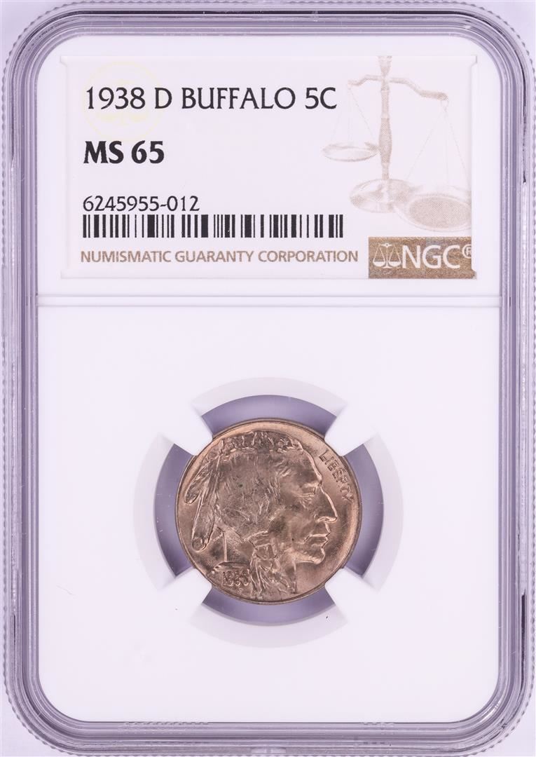 One 1938-D Buffalo Nickel Coin NGC MS65. NGC Certified.