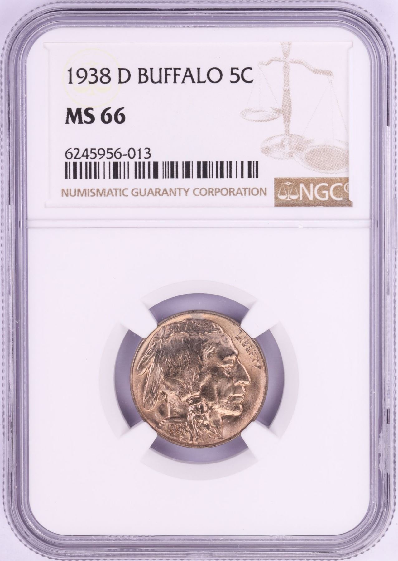 One 1938-D Buffalo Nickel Coin NGC MS66.