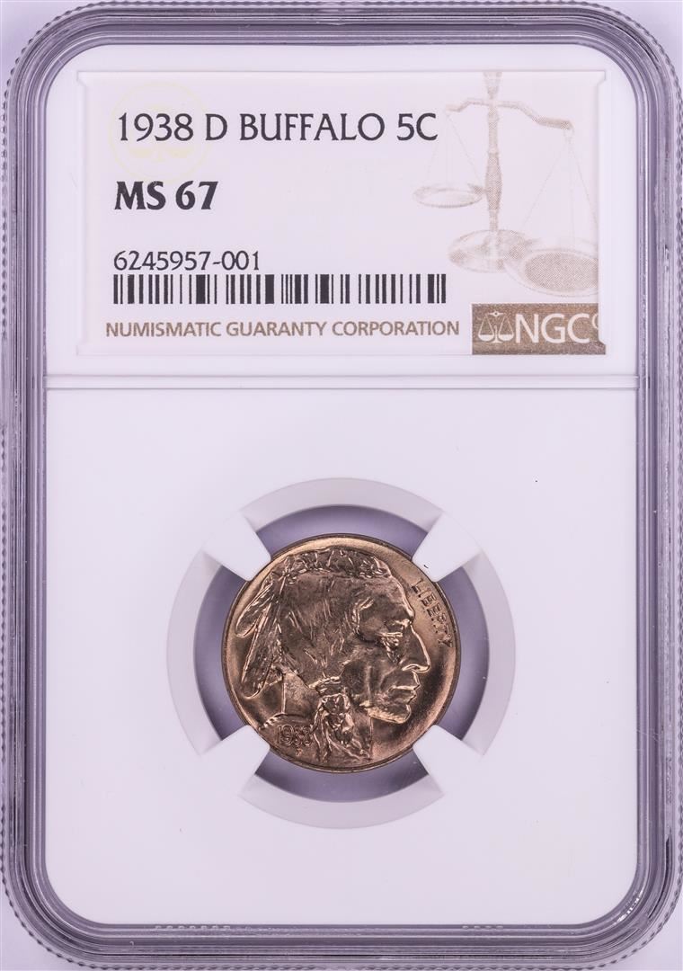 One 1938-D Buffalo Nickel Coin NGC MS67. NGC Certified.