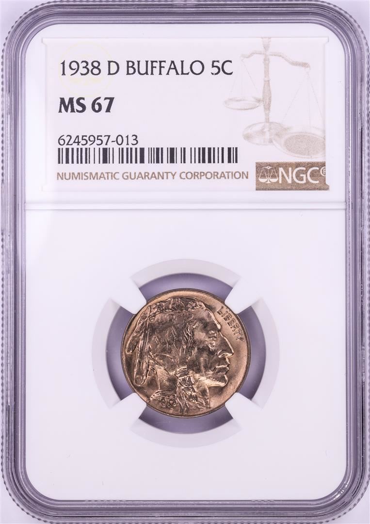 One 1938-D Buffalo Nickel Coin NGC MS67. NGC Certified.