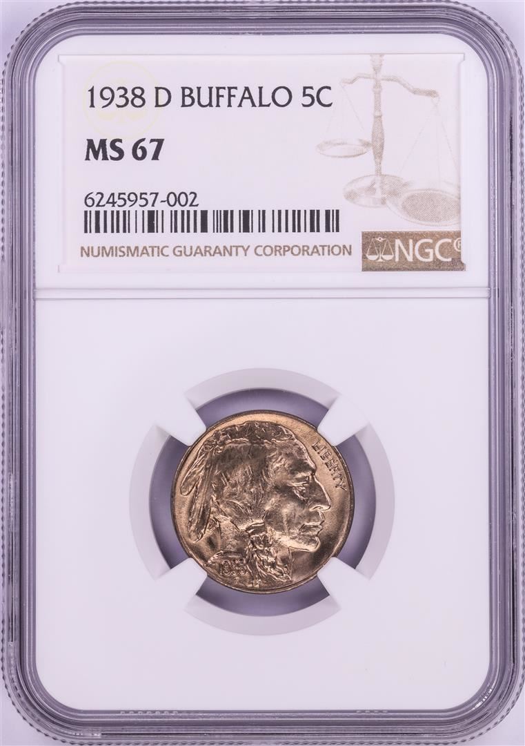 One 1938-D Buffalo Nickel Coin NGC MS67. NGC Certified.