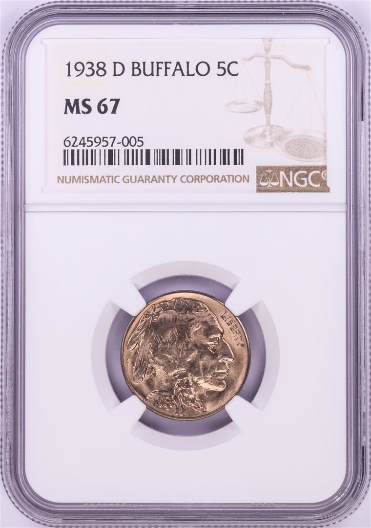 One 1938-D Buffalo Nickel Coin NGC MS67. NGC Certified.