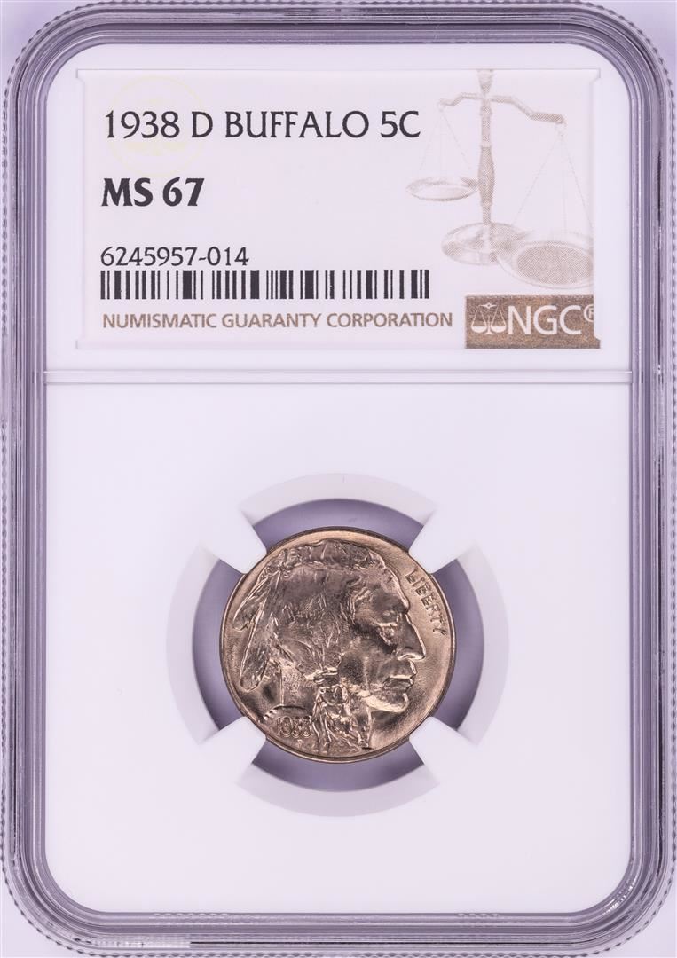 One 1938-D Buffalo Nickel Coin NGC MS67. NGC Certified.