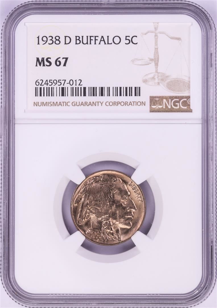 One 1938-D Buffalo Nickel Coin NGC MS67. NGC Certified.