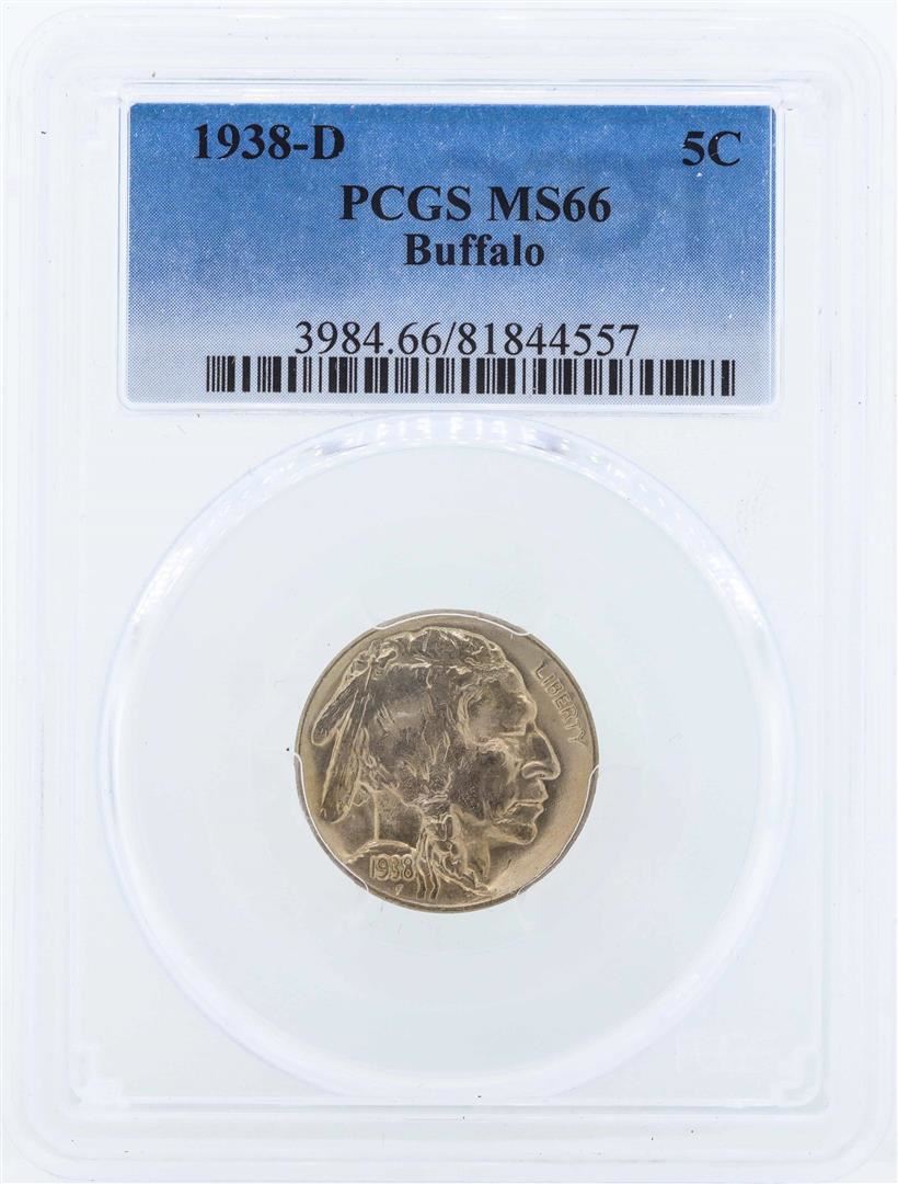 One 1938-D Buffalo Nickel Coin PCGS MS66. PCGS Certified.
