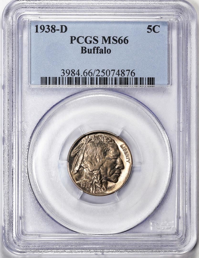 One 1938-D Buffalo Nickel Coin PCGS MS66. PCGS Graded.