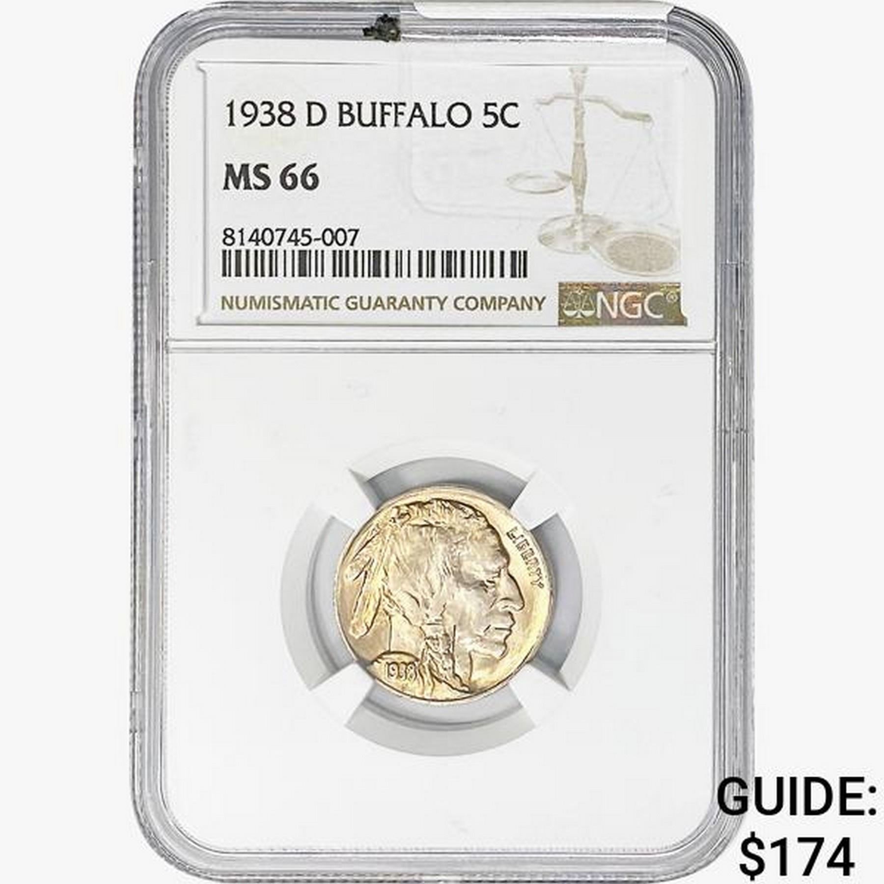 1938-D Buffalo Nickel NGC MS66