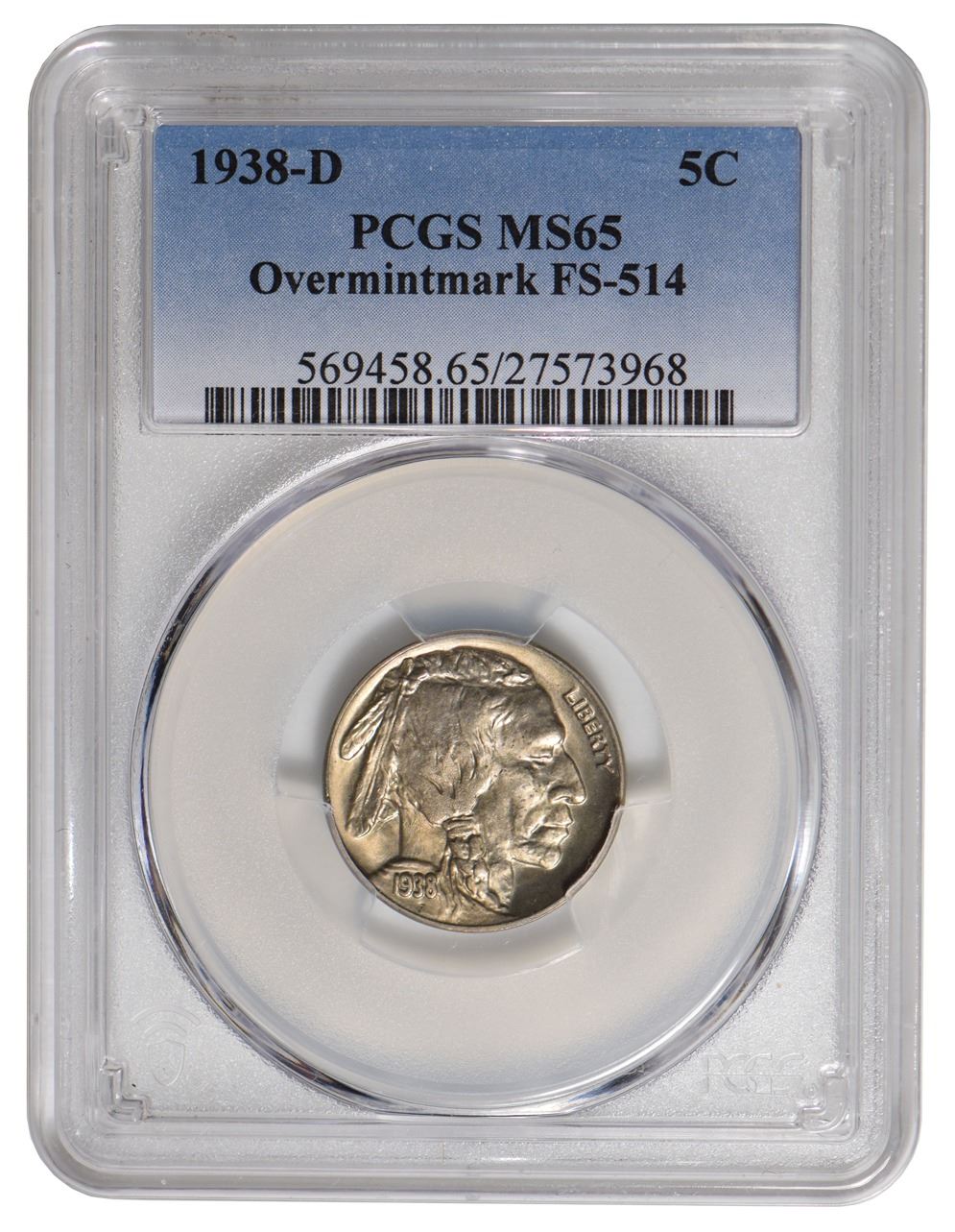 One 1938-D Buffalo Nickel Over mintmark PCGS MS65.