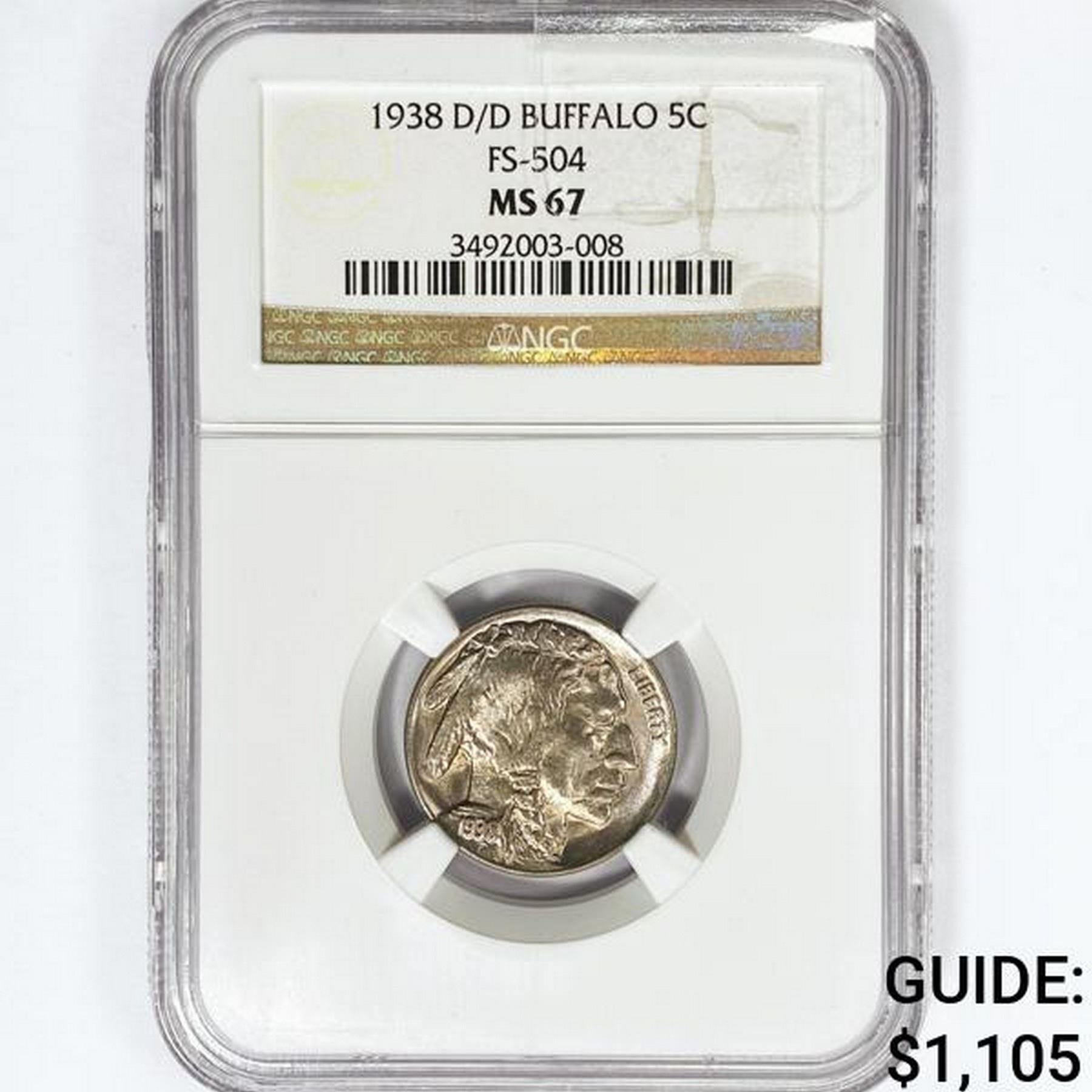 1938 D/D Buffalo Nickel NGC MS67 FS-504