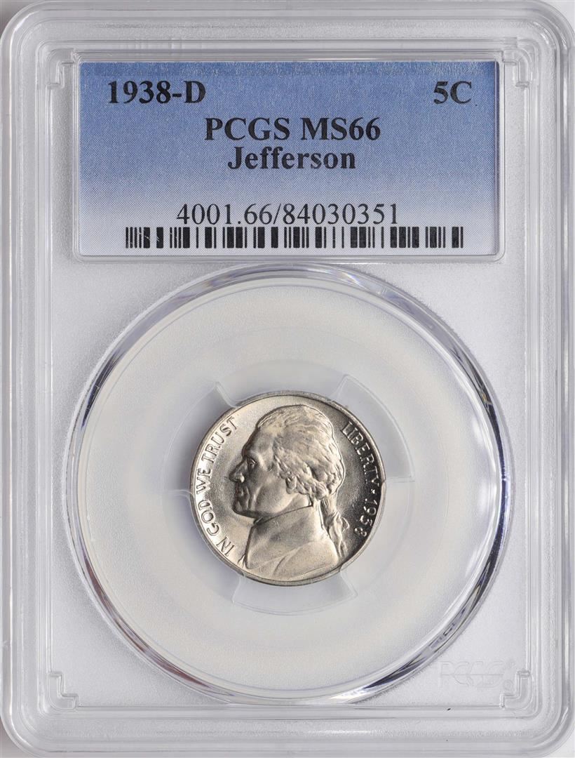One 1938-D Jefferson Nickel Coin PCGS MS66. PCGS Graded.
