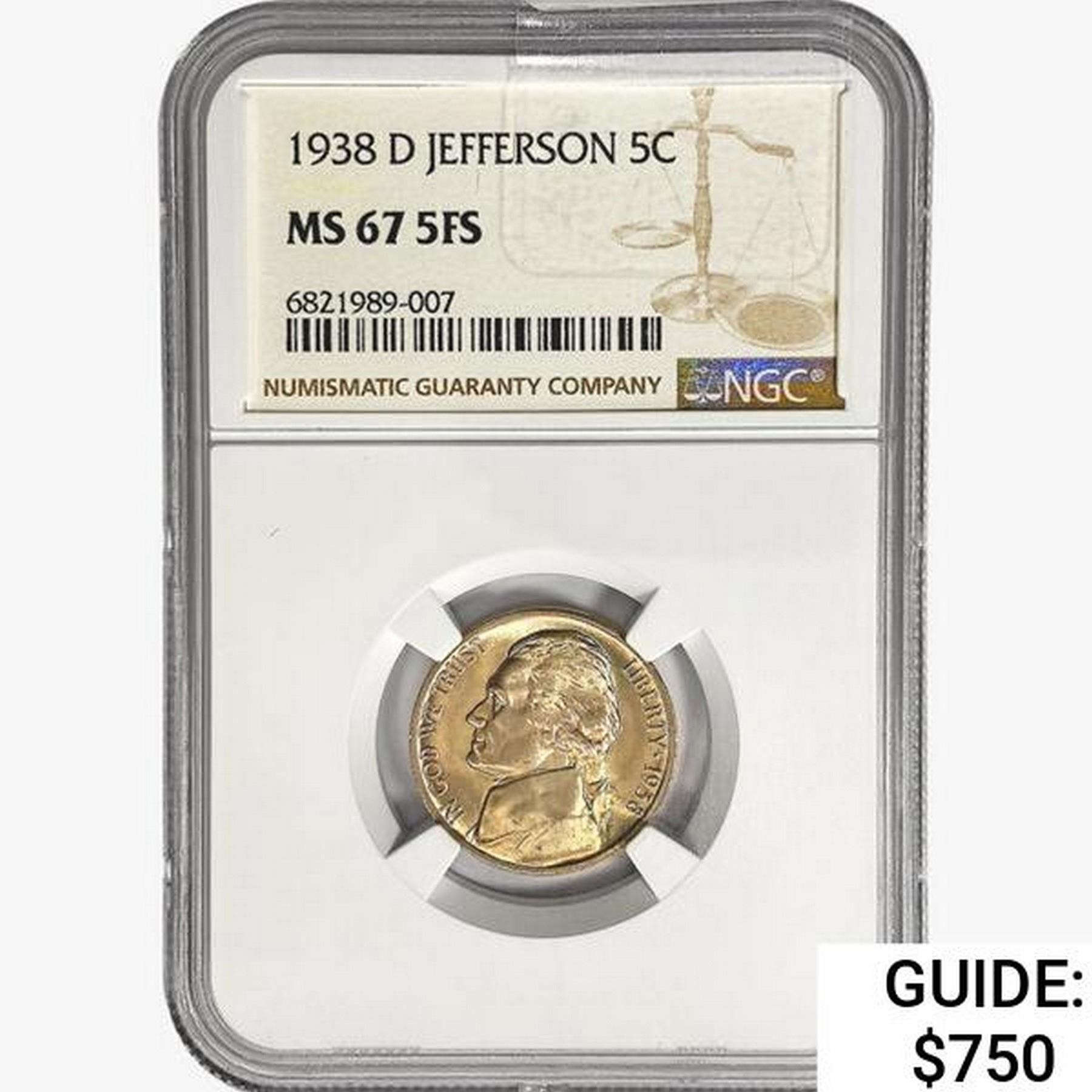 1938-D Jefferson Nickel NGC MS67 5FS