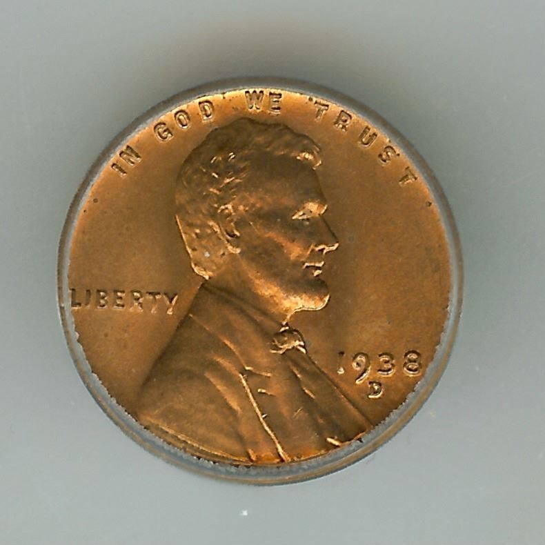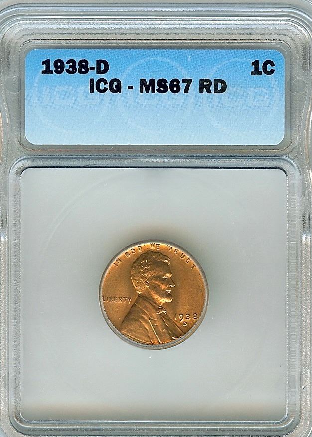 1938-D LINCOLN WHEAT CENT ICG MS67 RED