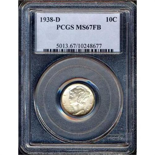 <b>1938-D Mercury Dime. PCGS graded MS67 FB.</b> A dazzling superb gem of the finest quality for the issue <b>(PCGS # 5013)</b> <i>
