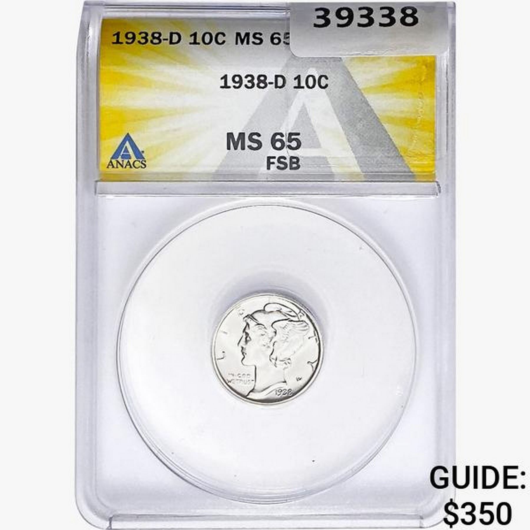 1938-D Mercury Silver Dime ANACS MS65 FSB