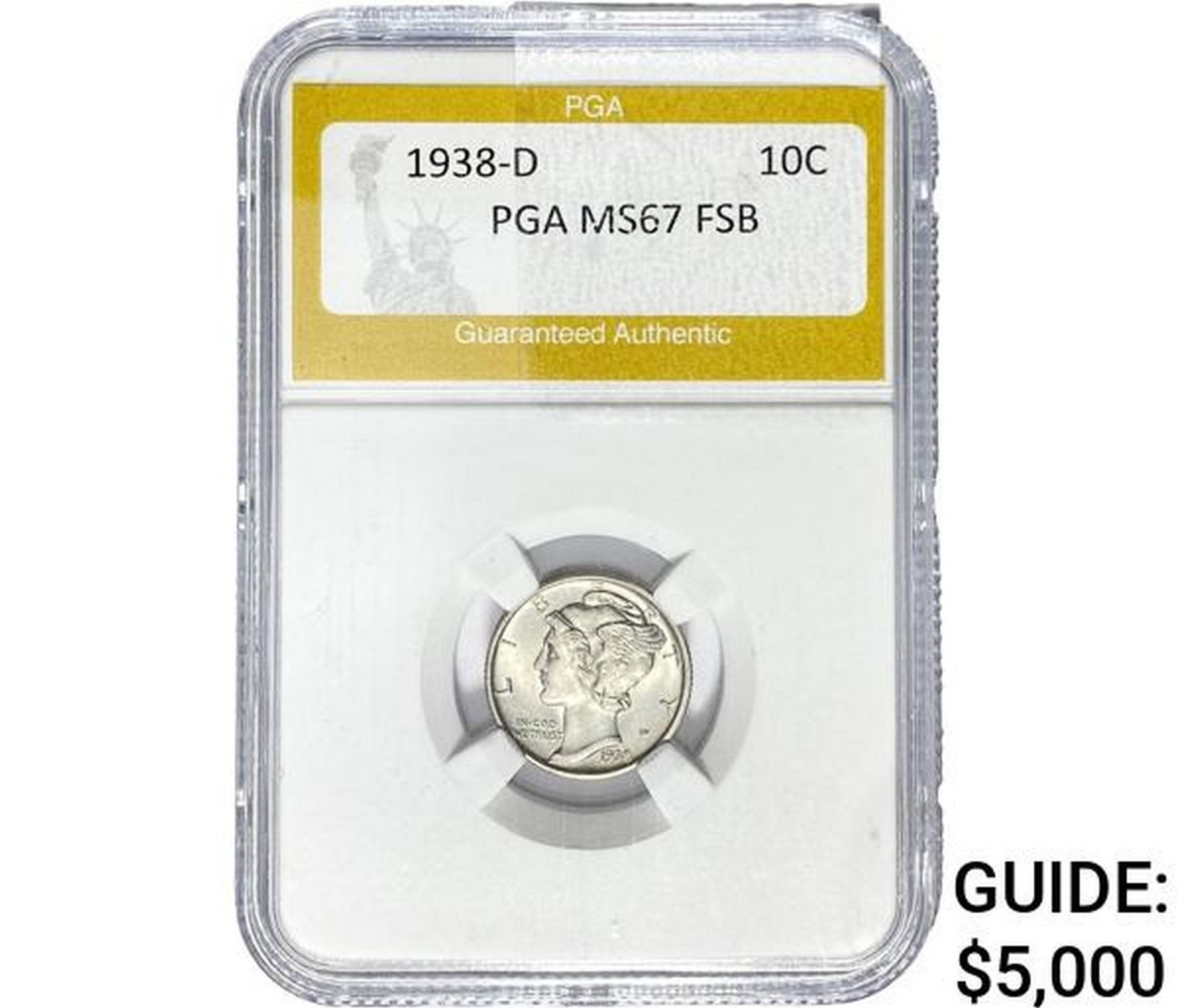 1938-D Mercury Silver Dime PGA MS67 FSB