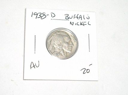 1938-D *NICE AU HIGH GRADE* BUFFALO NICKEL RED BOOK VALUE $20.00+ *NICE EARLY AU HIGH GRADE*!! BUFFALO NICKEL CAME OUT OF SAFE!! ***Coin, Currency & All Items Listed in this auction - Grades, Conditions and Values are not Safe Deposit Coins LLC Responsibilty. Grades, Condition and Values are determined by Consigner(s) & Buyers