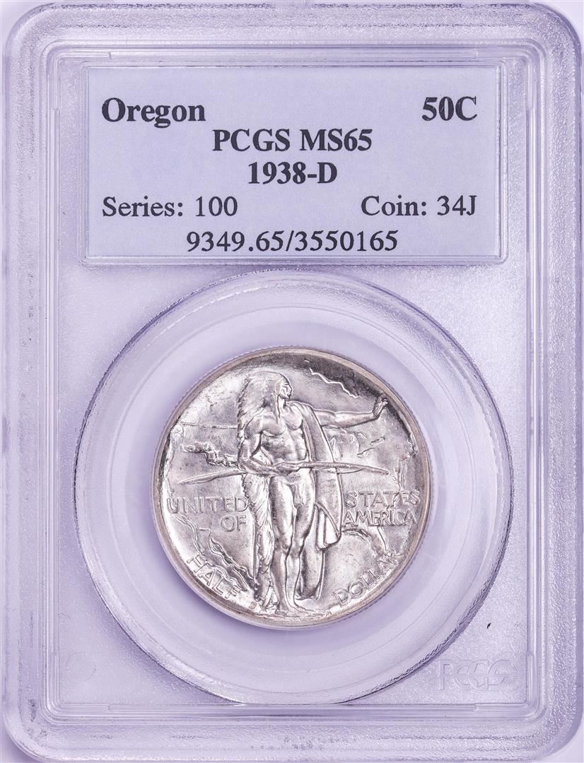 One 1938-D Oregon Trail Commemorative Half Dollar Coin PCGS MS65. PCGS Graded.