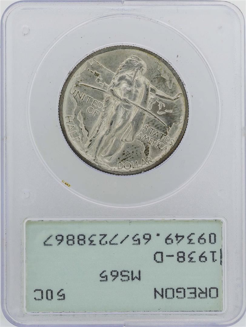 One 1938-D Oregon Trail Memorial Commemorative Half Dollar Coin PCGS MS65. PCGS Graded.