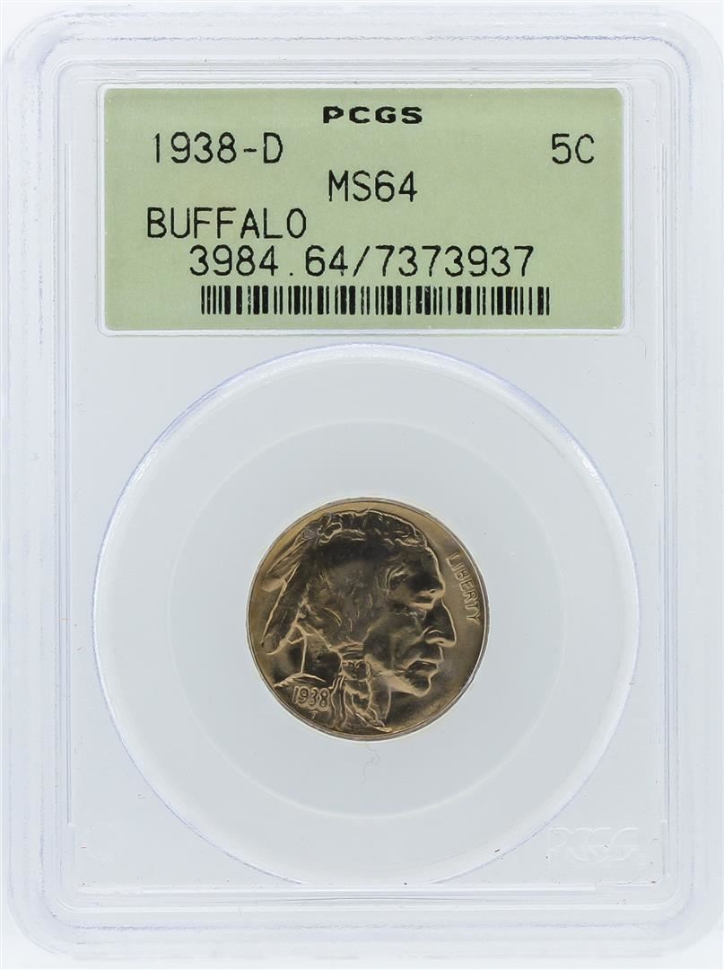 One 1938-D PCGS MS64 Buffalo Nickel. PCGS Certified.