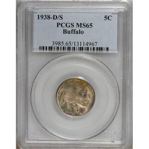 <B>1938-D/S 5C MS65 PCGS.</B></I> PCGS Population (1399/1294). NGC Census: (552/729). Mintage: 7,020,000. Numismedia Wsl. Price for NGC/PCGS coin in MS65: $160. (#3985)<BR><BR><B>Coin Engraver:</B> James E. Fraser<BR><BR><b>Shipping:</b> Coins & Currency (<a target="_blank" href="http://www.heritageauctions.com/common/shipping.php">view shipping information</a>\)