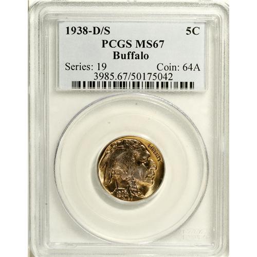 1938-D/S 5C MS67 PCGS. This is a stunning Superb Gem w