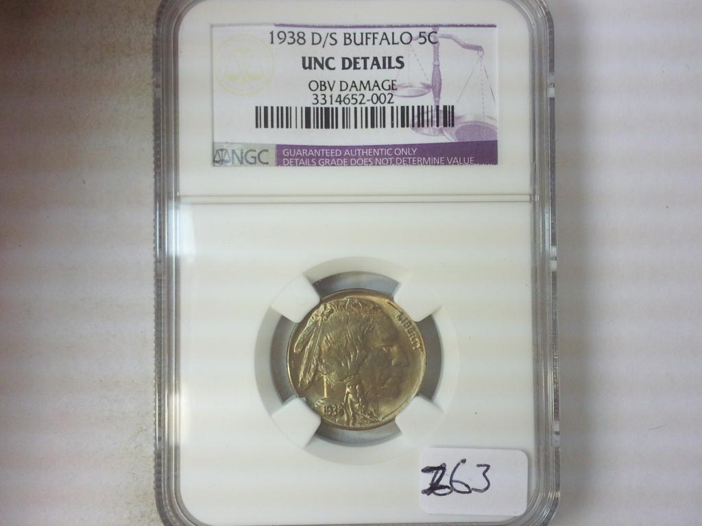 1938-D/S BUFFALO NICKEL NGC UNC DETAILS OBV DAMAGE
