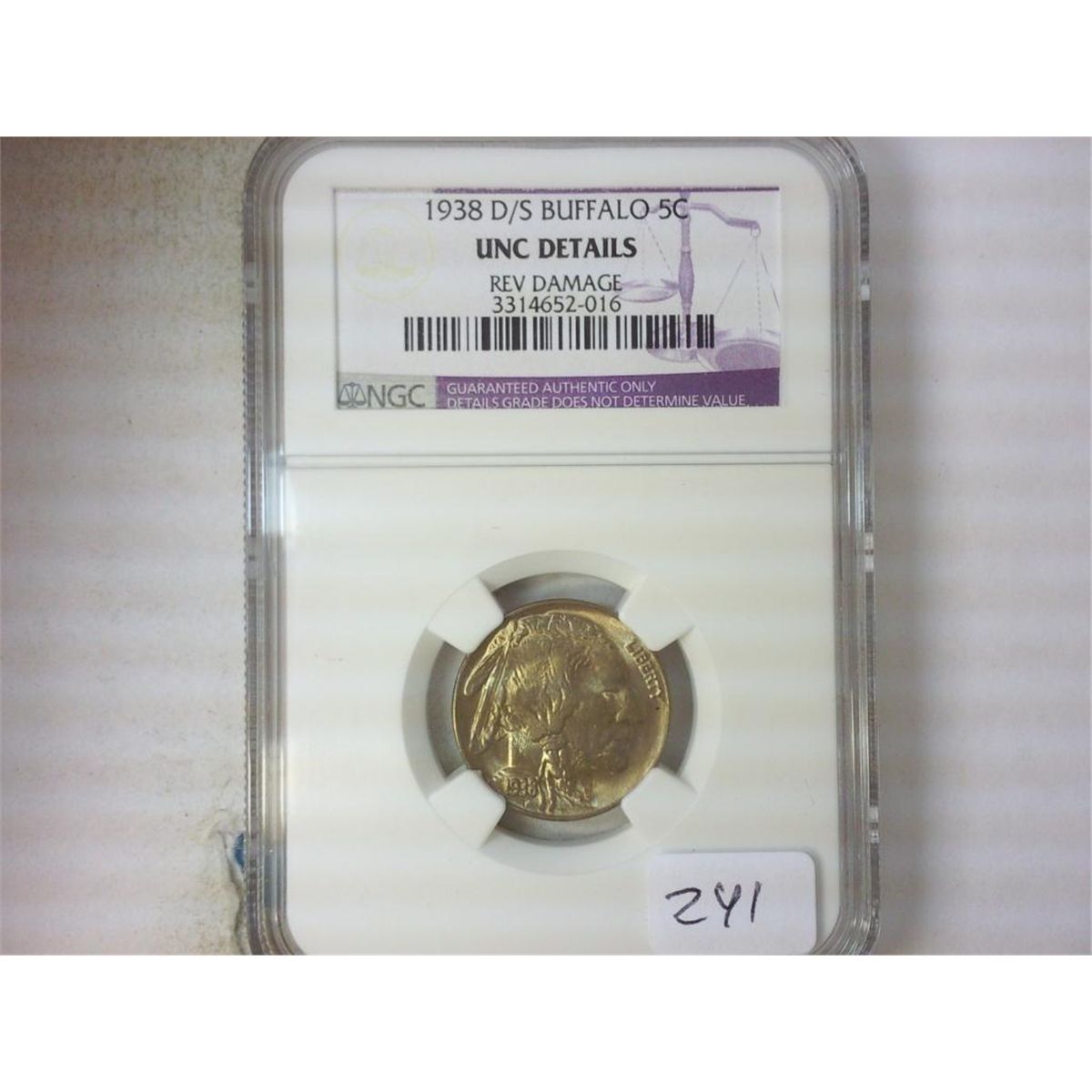 1938-D/S BUFFALO NICKEL NGC UNC DETAILS REV DAMAGE