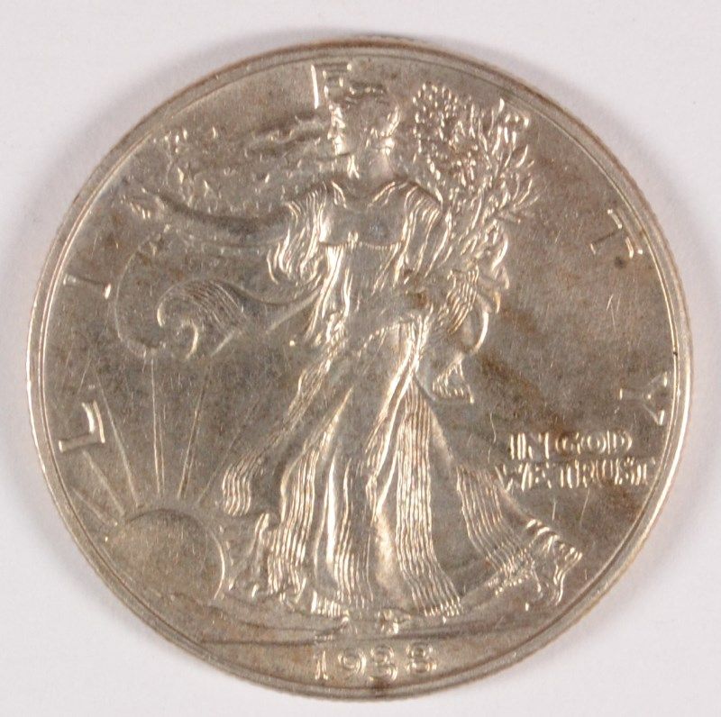 1938-D WALKING LIBERTY HALF DOLLAR, AU-55+ NICE