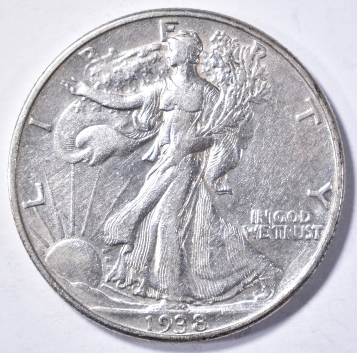 1938-D WALKING LIBERTY HALF DOLLAR, AU KEY DATE