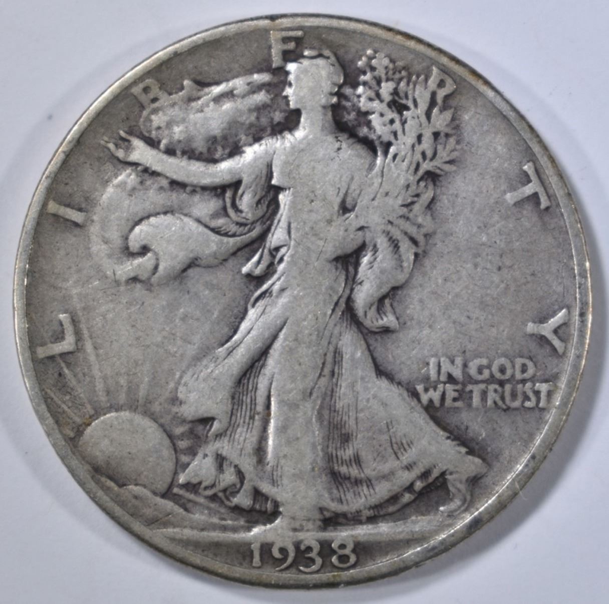 1938-D WALKING LIBERTY HALF DOLLAR, F/VF