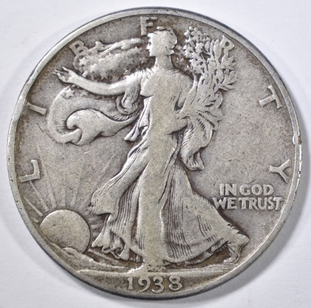 1938-D WALKING LIBERTY HALF DOLLAR, F/VF