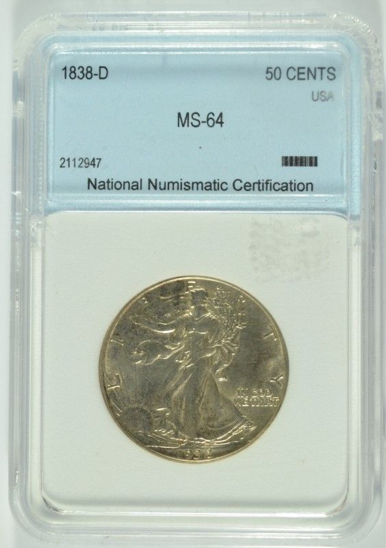 1938-D WALKING LIBERTY HALF DOLLAR, NNC MS-64 TOUGH! (HOLDER SAYS 1838-D)