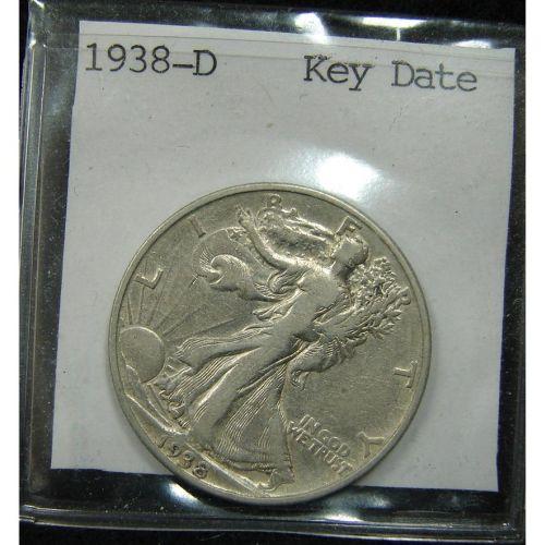 1938-D U.S. WALKING LIBERTY HALF DOLLAR.