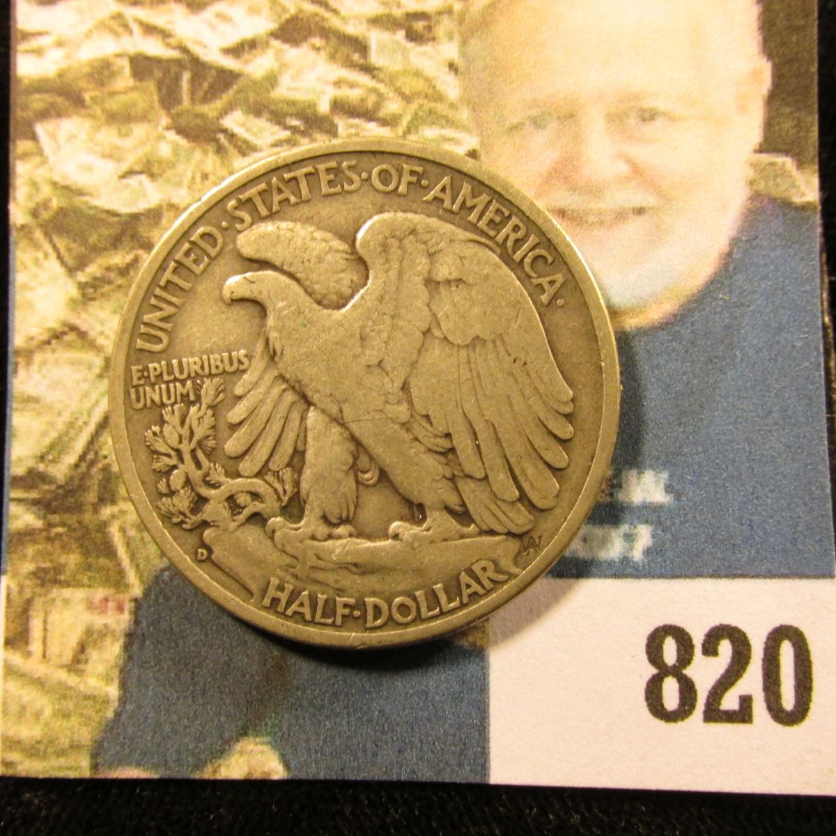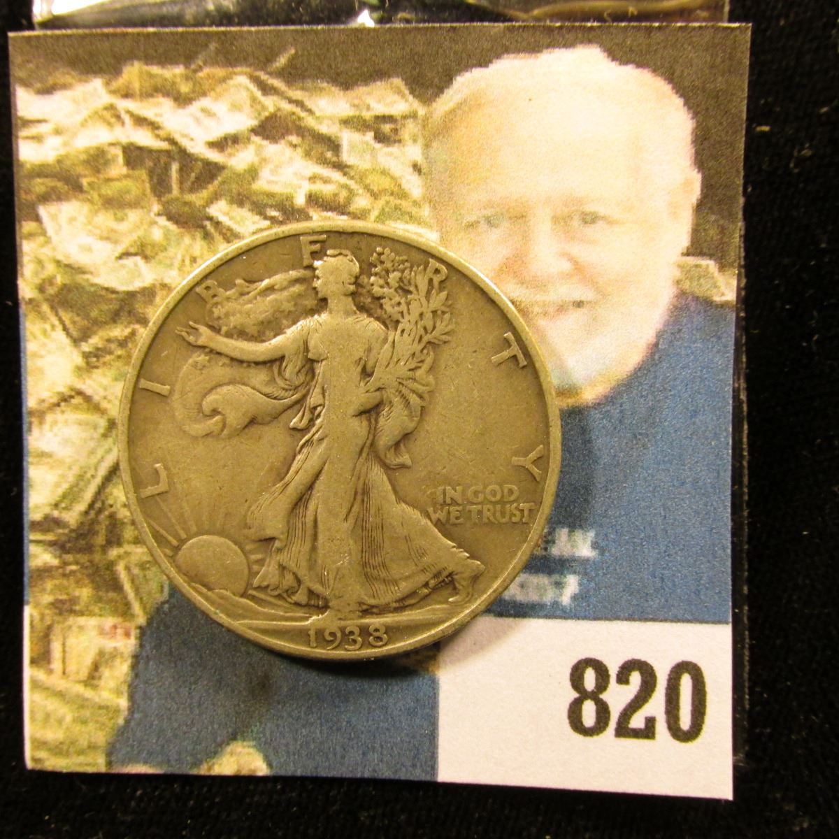 1938 D Walking Liberty Half Dollar, VG+. Scarce date.