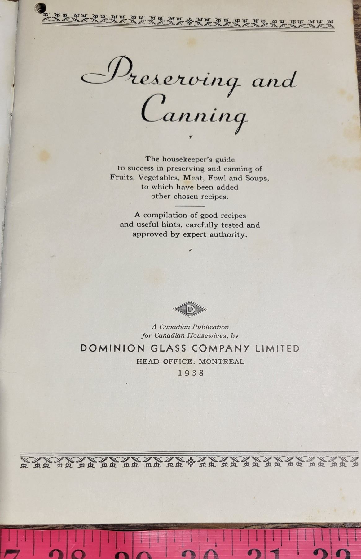 1938 “Dominion” Glass Company Preserving + Canning Book with a “Crown” Jar on Front