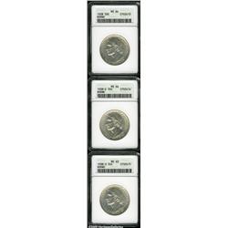 <B>1938<img border='0' src='http://www.heritagecoins.com/images/star.gif' width=10 height=10>ET Boone PDS Set MS63 to MS64 ANACS.</B></I> The set includes: <B>1938 MS64,</B></I> a whisper of gold color, unabraded; <B>1938-D MS64,</B></I> satiny and exquisite; and a <B>1938-S MS63,</B></I> freckles of russet color adorn the borders. Just 2,100 sets were issued. 3 Coins